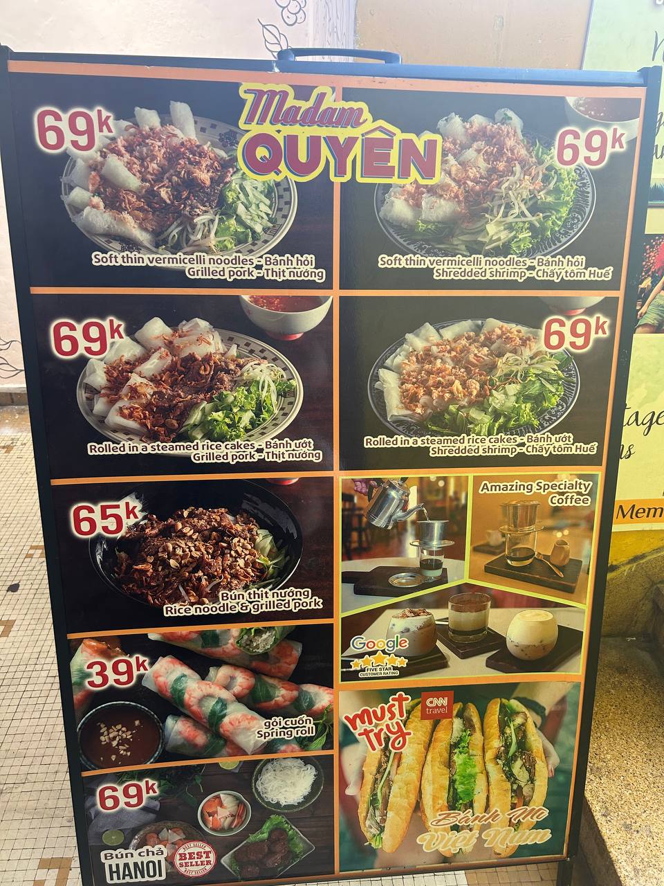 The menu here is far from eclectic, but it is clear that Madame Quyen has clearly concentrated on making a few dishes very well, with your recommendation being the Saigon bun thit nuong.